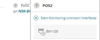 If an interface is grey and you only see the peer vPC name, click Start monitoring unknown interfaces, and select All interfaces on the List Resources page.