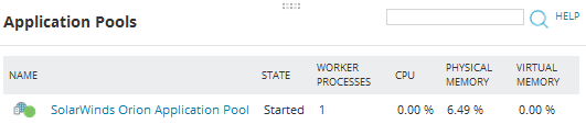 The Application Pools widget lists up to 5 instances of IIS application pools. You can use application pools to separate out applications from one another. If an issue occurs with an application, it may only affect other applications in the pool, not all applications in your environment.