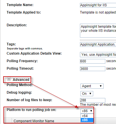 You should use 64-bit polling on 64-bit OS systems. Using AppInsight applications with 32-bit polling on 64-bit computers via an agent prevents certain performance counters from collecting information.