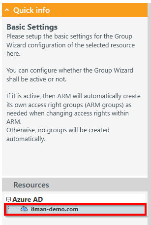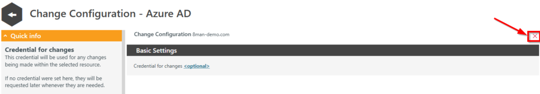 In the Change Configuration - Azure AD window, maximize the Quick info drop-down menu.