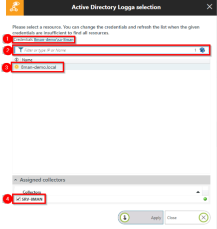 In the Active Directory Logga selection window, select the resource credentials.