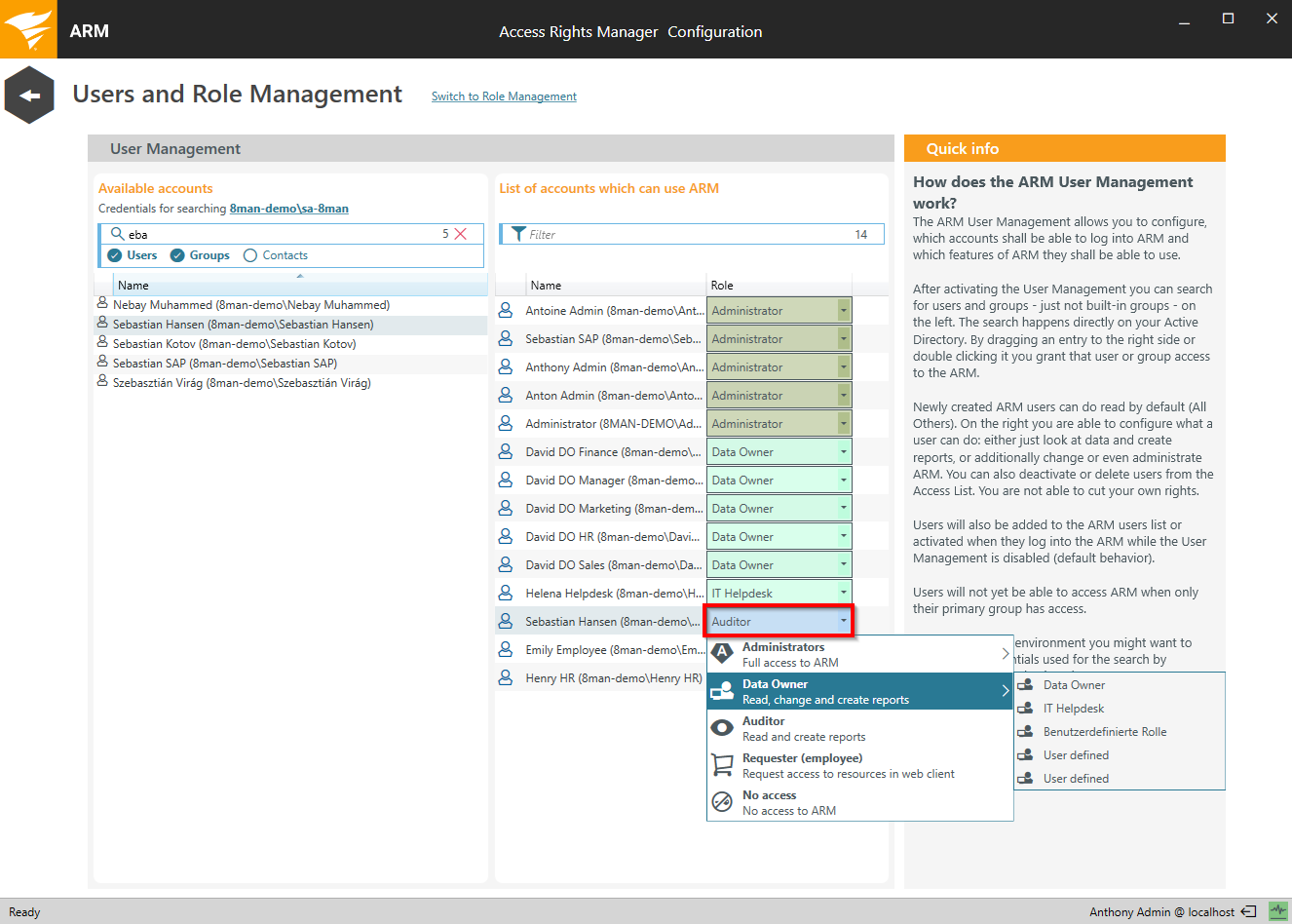See Define the ARM user roles for instructions on how to defile the user roles.
