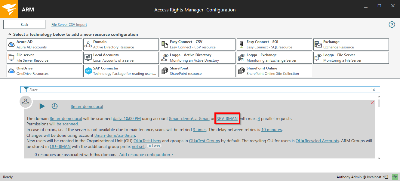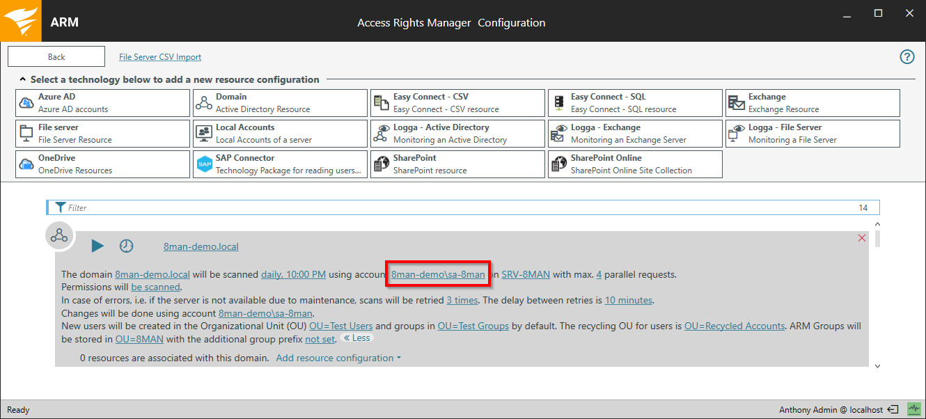 Click the highlighted resource and select the Active Directory object classes to read. This option is useful if you are working with AD delegation.