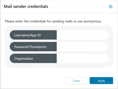 Set the sender address and specify the credentials to send the emails.