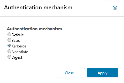 Under Authentication mechanism, select an authentication mechanism.