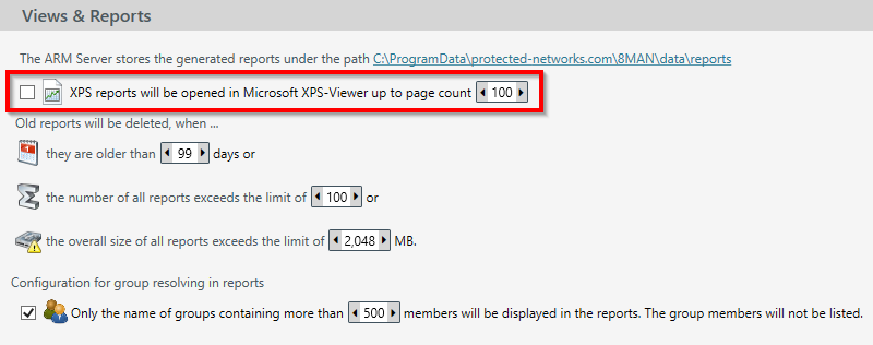 (Optional) Select the checkbox to enable ARM to open XPS reports in Microsoft XPS viewer.