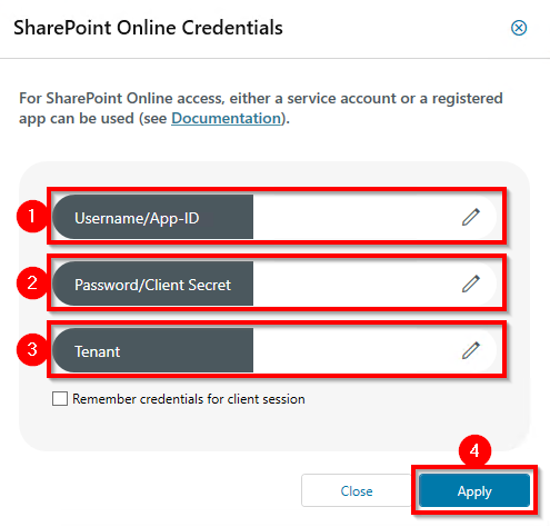 In the Username/App-ID field enter the app ID. Optionally, you can enter the user name of the service account.