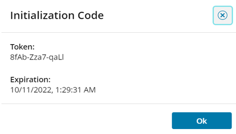 When you click Generate Init Code in the toolbar, ARM generates the temporary init (initialization) code and displays the token code and the corresponding expiration date in the Initialization Code window under Token. This code is used to download client certificates from the ARM server.