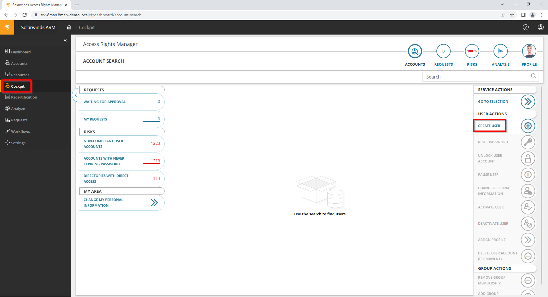 Click Create user in the cockpit.