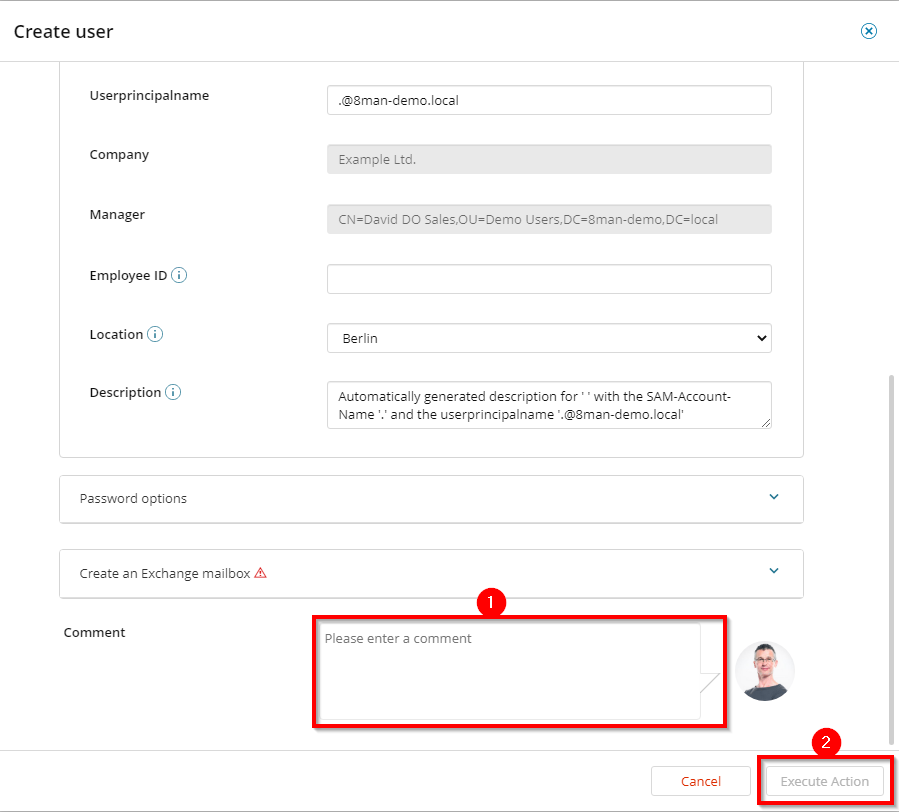 Create a new user in the web client. The creation is based on templates predefined by an administrator and is therefore efficient and standardized.