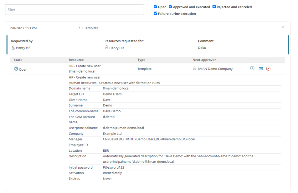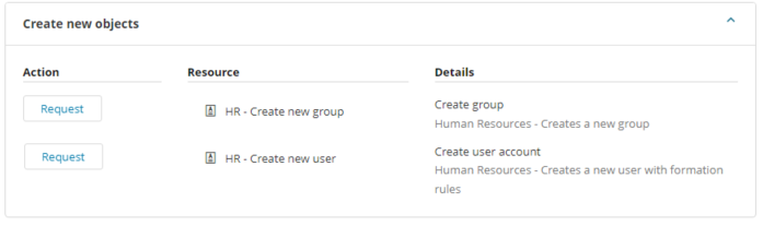 The ARM GrantMA self-service portal allows HR employees to create user accounts for new employees. Instead of sending user information to IT, the entry and creation of a new user account are combined into one simple step. IT simply has to approve the request.