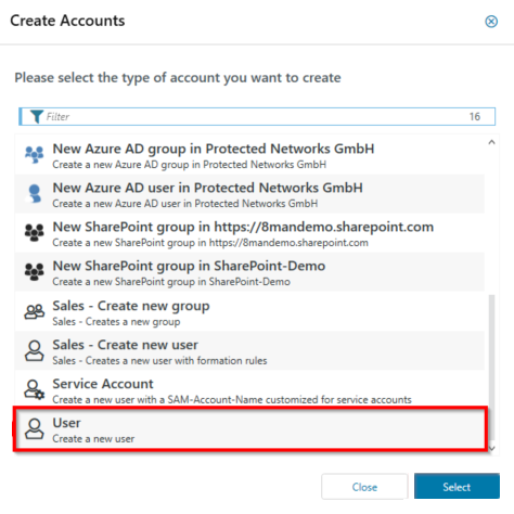 Select a user template, and then click Select.