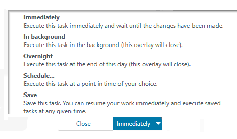 Click Immediately to complete the action or select another choice.