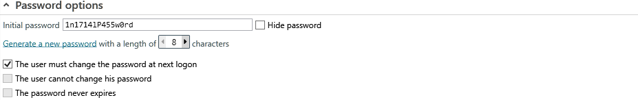 Set the password options.