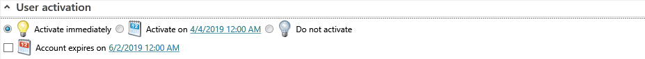Schedule the user account activation and set an expiration date.