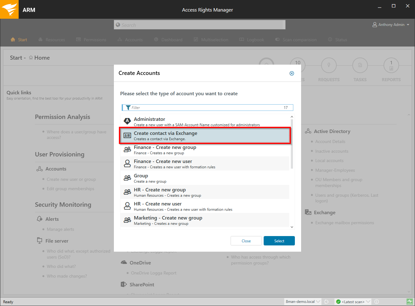 ARM creates contacts using the Exchange Powershell connection. Therefore, an Exchange resource configuration including the preparation of Exchange has to be completed.