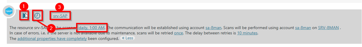 Sets or disables the SAP scan schedule. The schedule displays in the scan configuration description. |