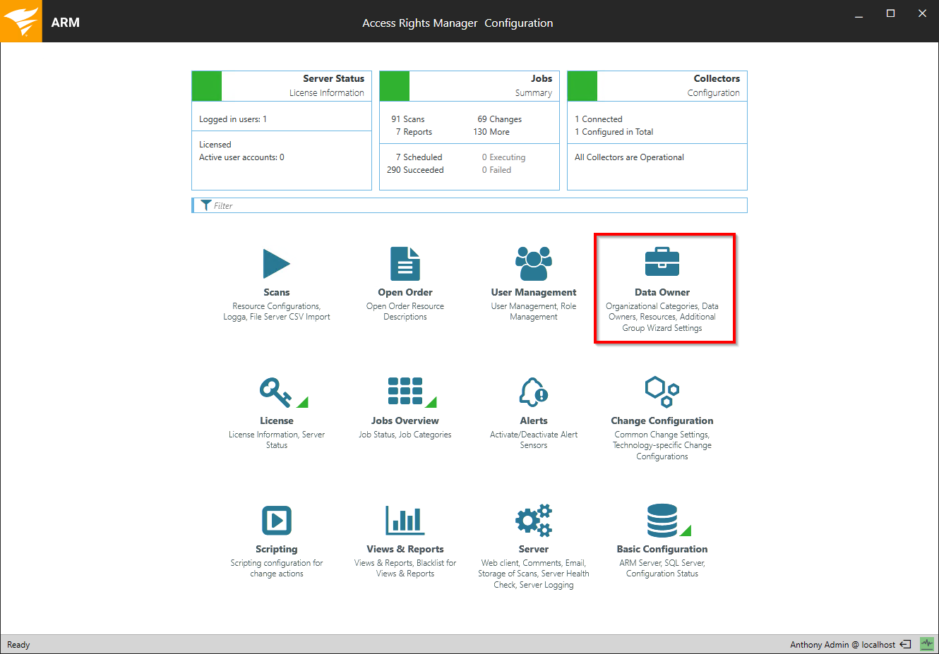 The Data Owner configuration allows you to create organizational categories. You an assign the Data Owner role to specific users and apply access rights to each user.