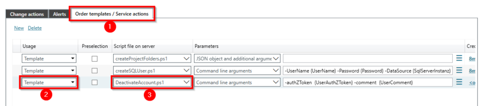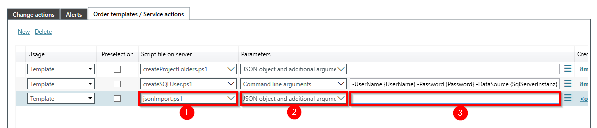 In the Name column, enter the script name. Ensure that the name matches the call in the template.