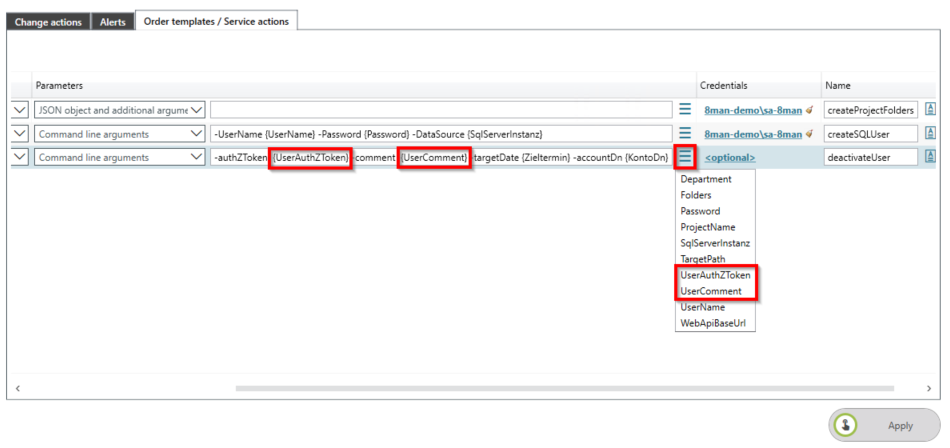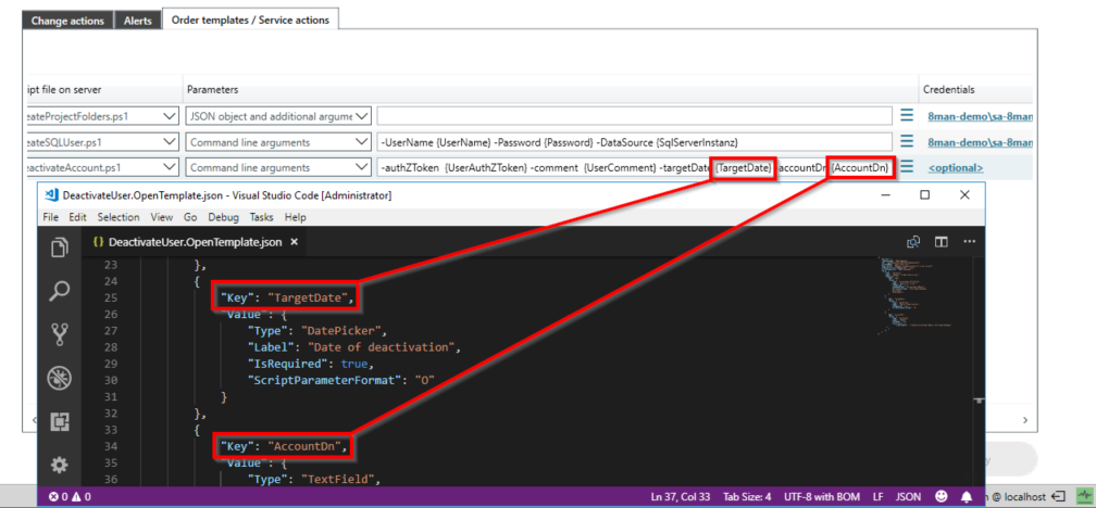 You can transfer parameters to a script directly by disabling a user through GrantMA or through a JSON or CSV file.