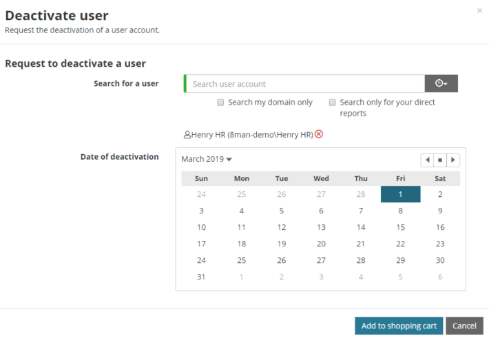 In the following example, the account will be deactivated and the date when the account should be deactivated is displayed.