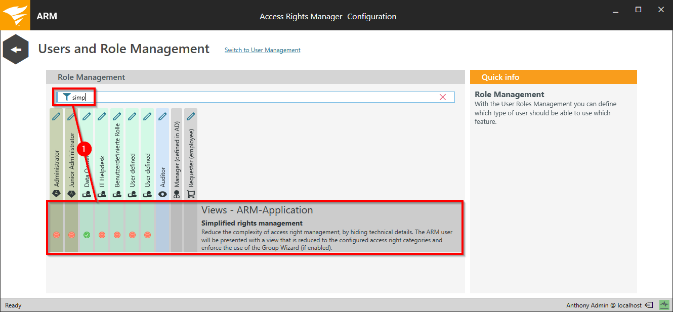 ARM provides the following user role types (from left to right, as shown below):