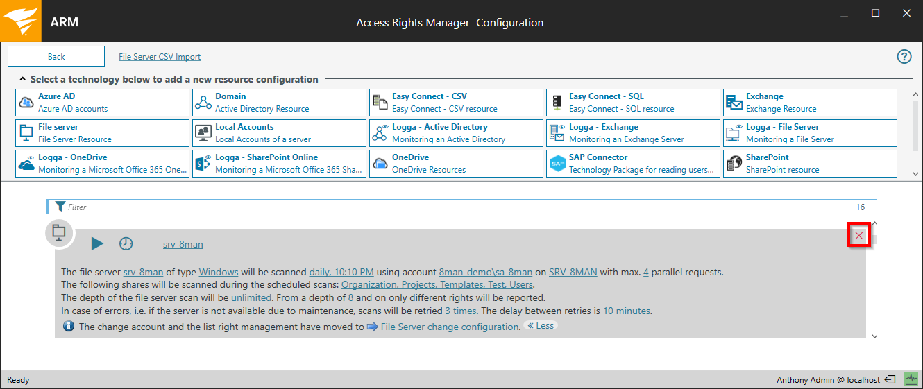 Locate the File server  scan configuration. scan configuration.