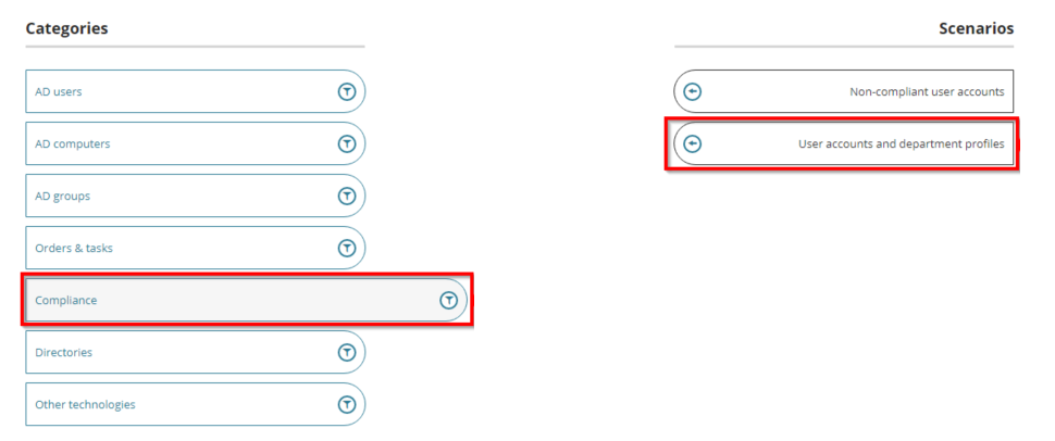 In the Analysis screen, click Compliance and then click User accounts and department profiles.