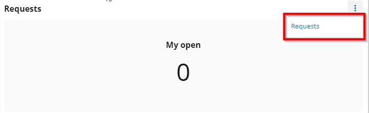 This widget displays your open requests. Click the ellipsis  icon and select Requests to open the Requests view and manage your open requests.