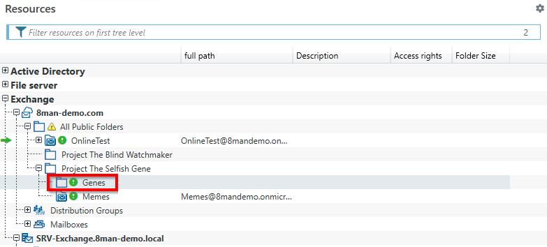 The Resources view allows you to view all access rights to public folders in your organization. To access this view, log in to the Access Rights Manager application and click the Resources tab in the toolbar.