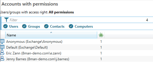 Under Accounts with permissions, you can view all accounts with access rights in a flat list view.