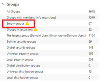 Over time, empty groups often accumulate in an Active Directory (AD) structure. Use the Access Rights Manager application to locate these groups.