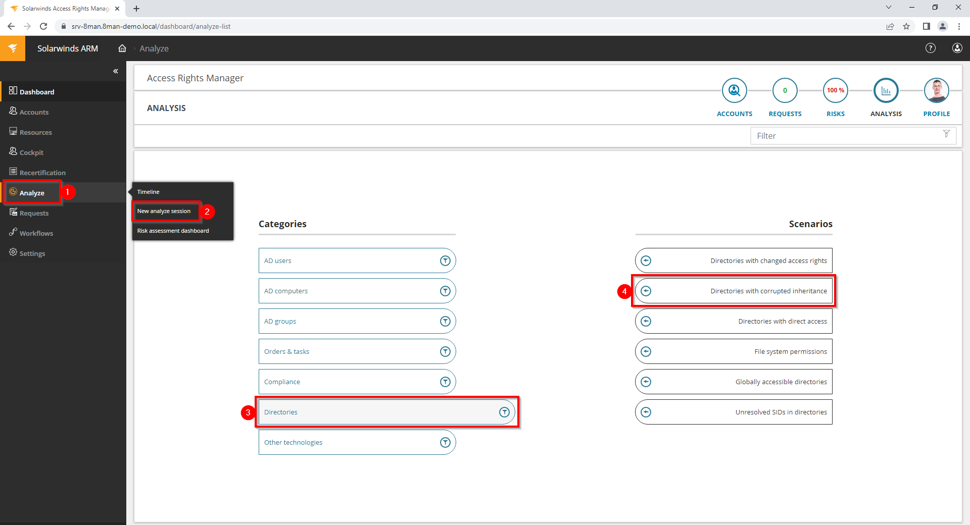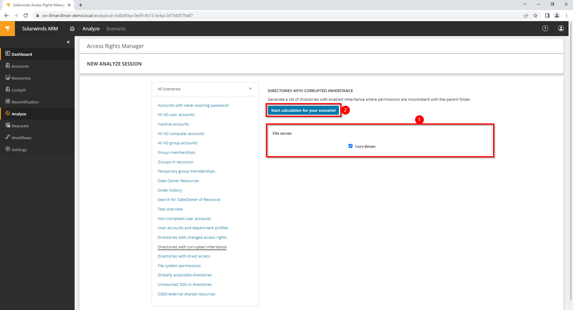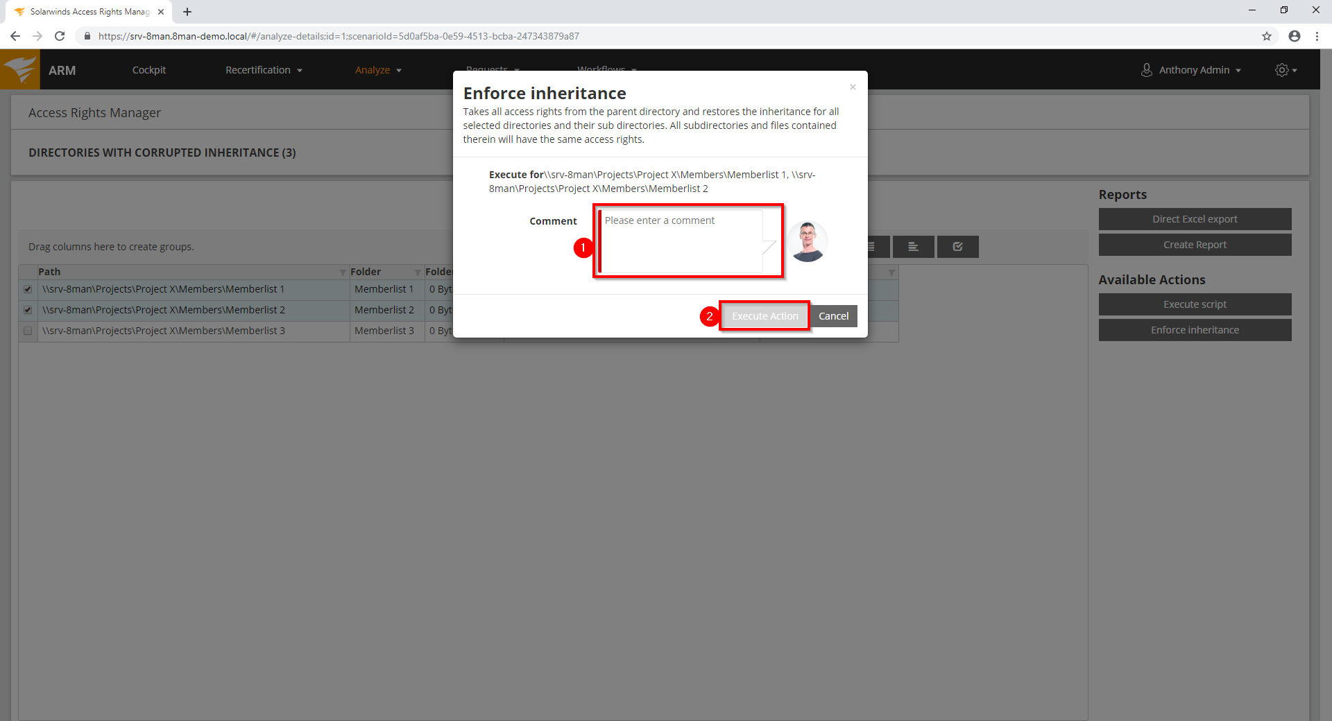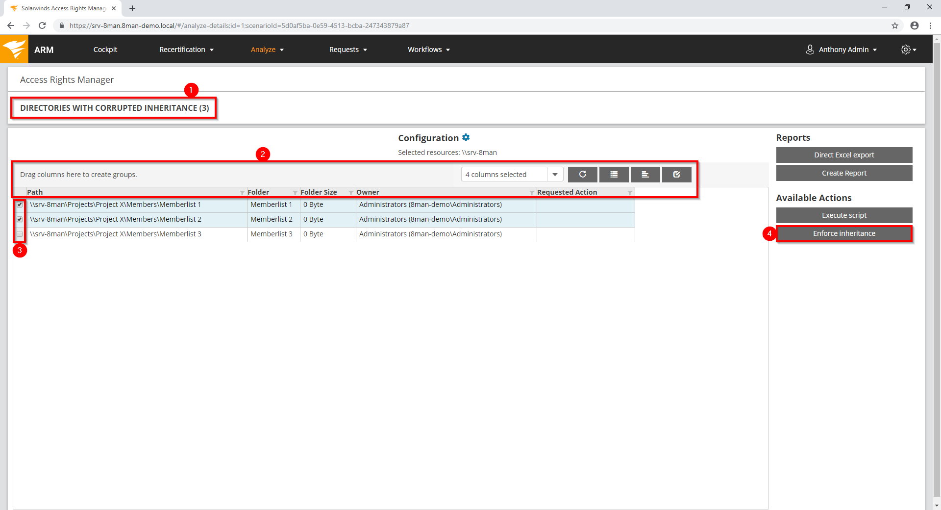 - Access Rights Manager lists all directories with corrupted inheritance.