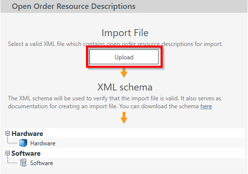 - Upload an XML Open Order resource configuration to the Data Owner configuration in ARM.