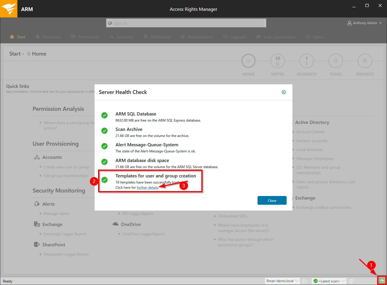 If errors occur when the templates are loaded, they are displayed in the server health check. You will also find information on the conditions (constraints) applied here.