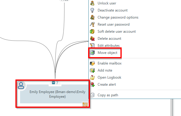 You can use ARM to move objects, user accounts, group accounts and computers from one organizational unit (OU) into another. This task may be required if a user moves location or new group policies when applicable. ARM documents all movement among OUs.