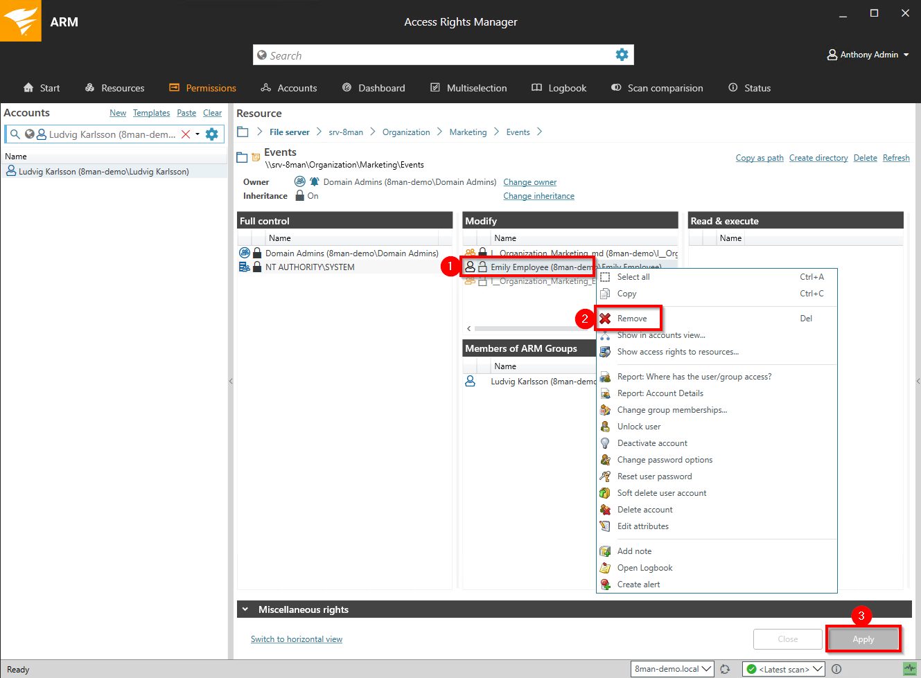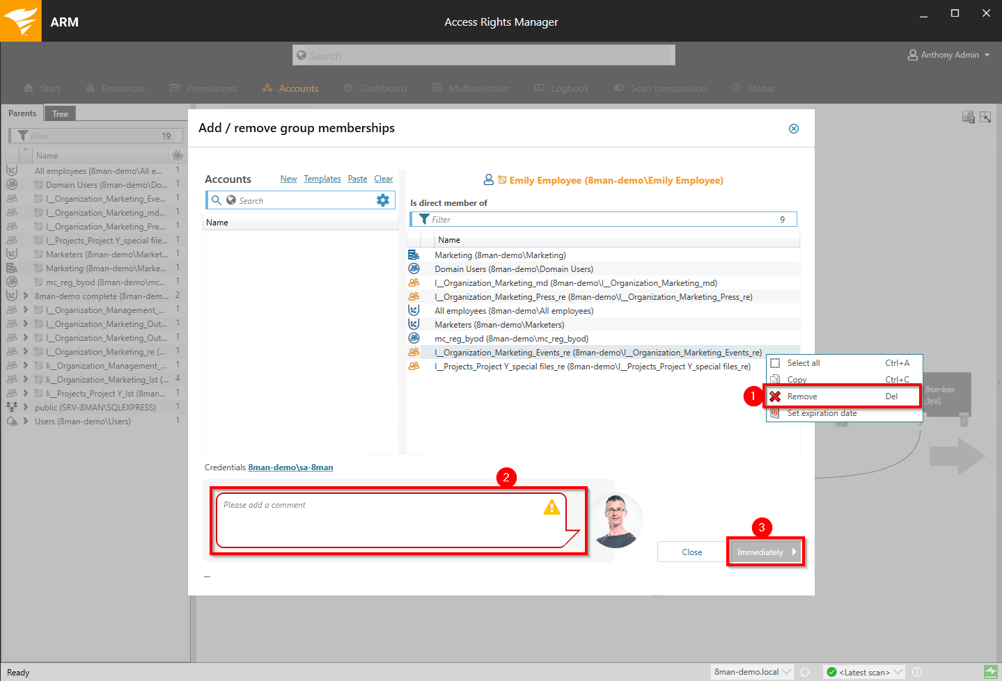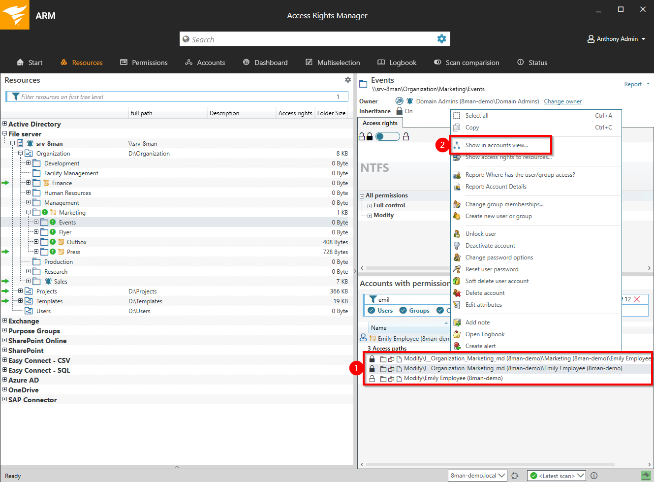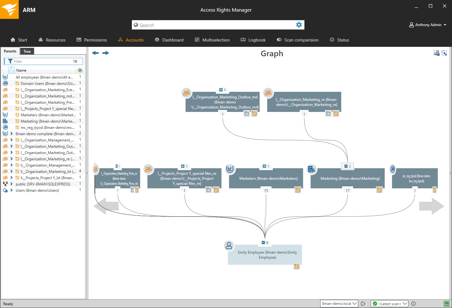 Multiple access rights often occur through nested AD group memberships. They are often a symptom of a confusing group and AD structure. Access rights to a particular resource should only be achieved through one group membership. Access Rights Manager allows you to remove multiple access paths quickly and easily.
