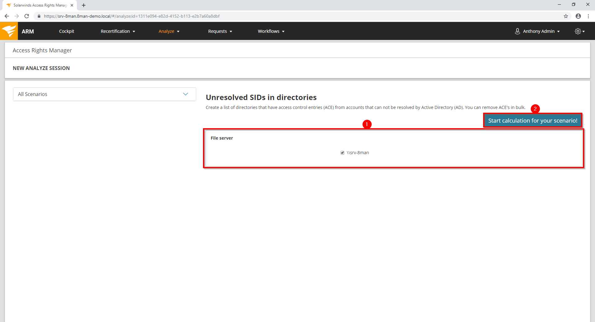 - Access Rights Manager lists all directories with unresolved SIDs.