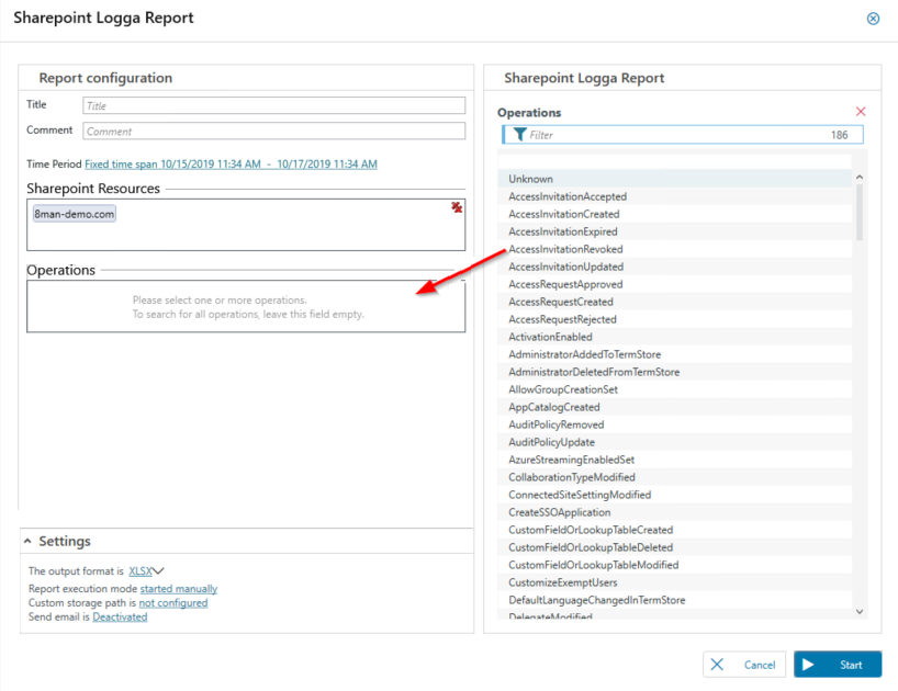 Events recorded with the SharePoint Online Logga can be analyzed in detail and recurrently using the report functions.