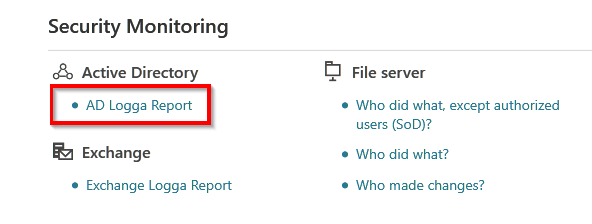 Under Security Monitoring, click AD Logga Report.