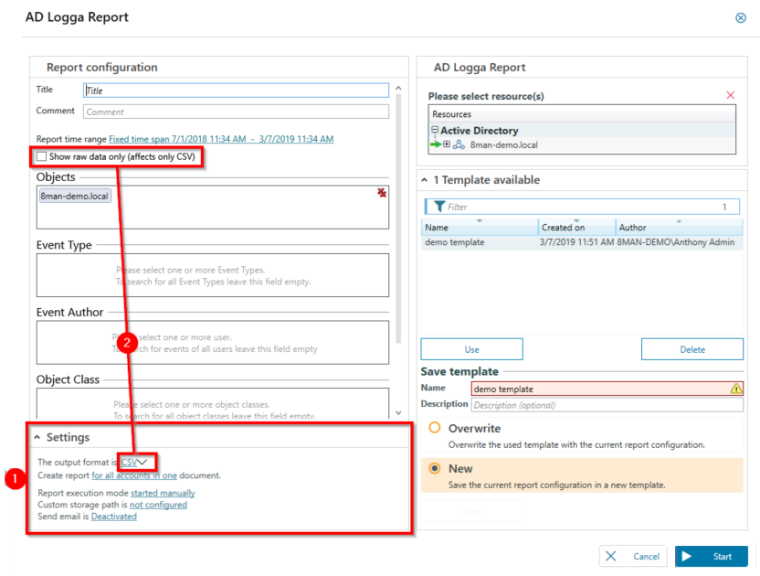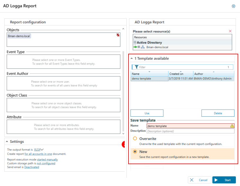 (Optional) Save the AD Logga report configurations as templates. The templates will save you time by reusing your report configurations. Otherwise, go to the next step.