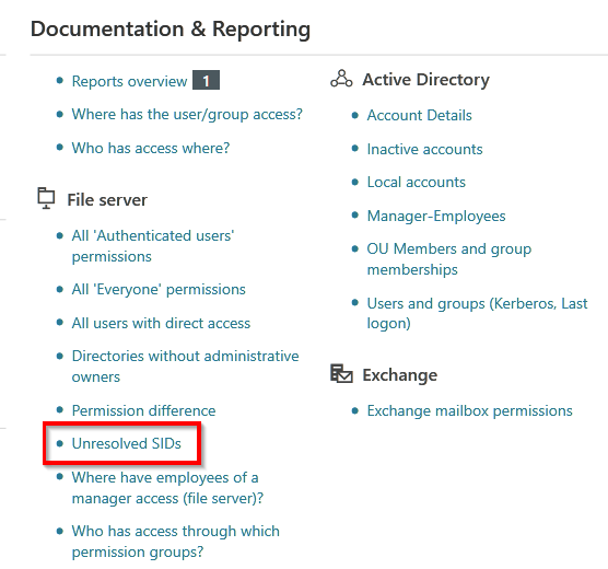 The Unresolved SIDs report identifies and lists all unresolved SIDs in your system.