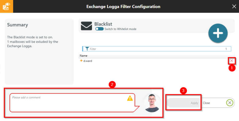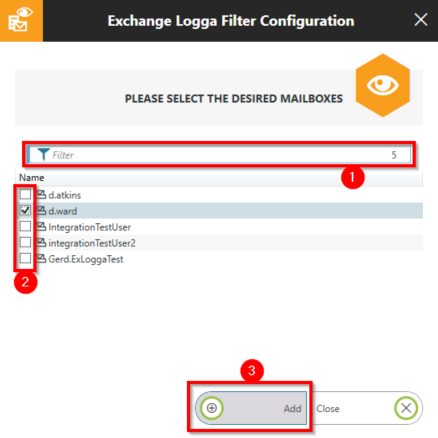 In the Exchange Logga Filter Configuration window, configure the filter.   -