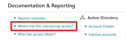 Under Documentation and Reporting, click Where has the user/group access.