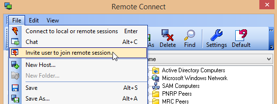 - Select File > Invite user to a remote session.
