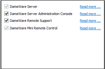- On the Dameware Components Configuration page, click Next.