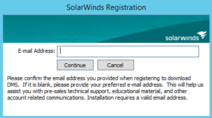 As the installation progresses, a dialog box displays, prompting you to enter an email address. If you do not enter an email address, the installation does not complete.