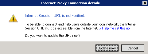- At the end of the configuration, the Configuration Wizards prompts you to enter the Internet Session URL. Click Update Now.