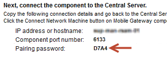 You will configure the first server to use the pairing password to authenticate the connection between the Central Server and the Mobile Gateway.