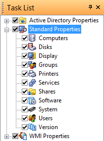 - In the Task List, select the properties you want to export.